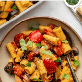 - Vegetable Substitutions: Feel free to swap the zucchini, onion, mushrooms, and/or bell pepper for other veggies you prefer or happen to have on hand! I recommend keeping the volume of the veggies roughly the same. I do recommend sticking to using only cherry or grape tomatoes, as they cook quickly and make up the main portion of the “sauce” for this pasta.